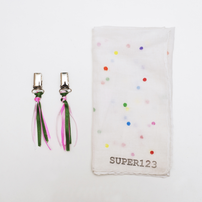 SUPER123 IST EINE KLEINE FEINE KOLLEKTION MIT PRODUKTEN, DIE ALLE PER HAND MIT KONFETTI BEDRUCKT SIND. ES SIND FRÖHLICHE LIEBLINGSSTÜCKE DIE UNS FREUDE IN UNSER LEBEN BRINGEN. 2009 VON DER PHOTOGRAFIN CLAUDIA CASAGRANDE UND DER DESIGNERIN INA SEIFART GEGRÜNDET. ES BEGANN MIT EINEM TSHIRT WELCHES DER STADT BERLIN GEWIDMET WURDE. MITTLERWEILE WIRD SUPER123 VON INA SEIFART WEITERGEFÜHRT